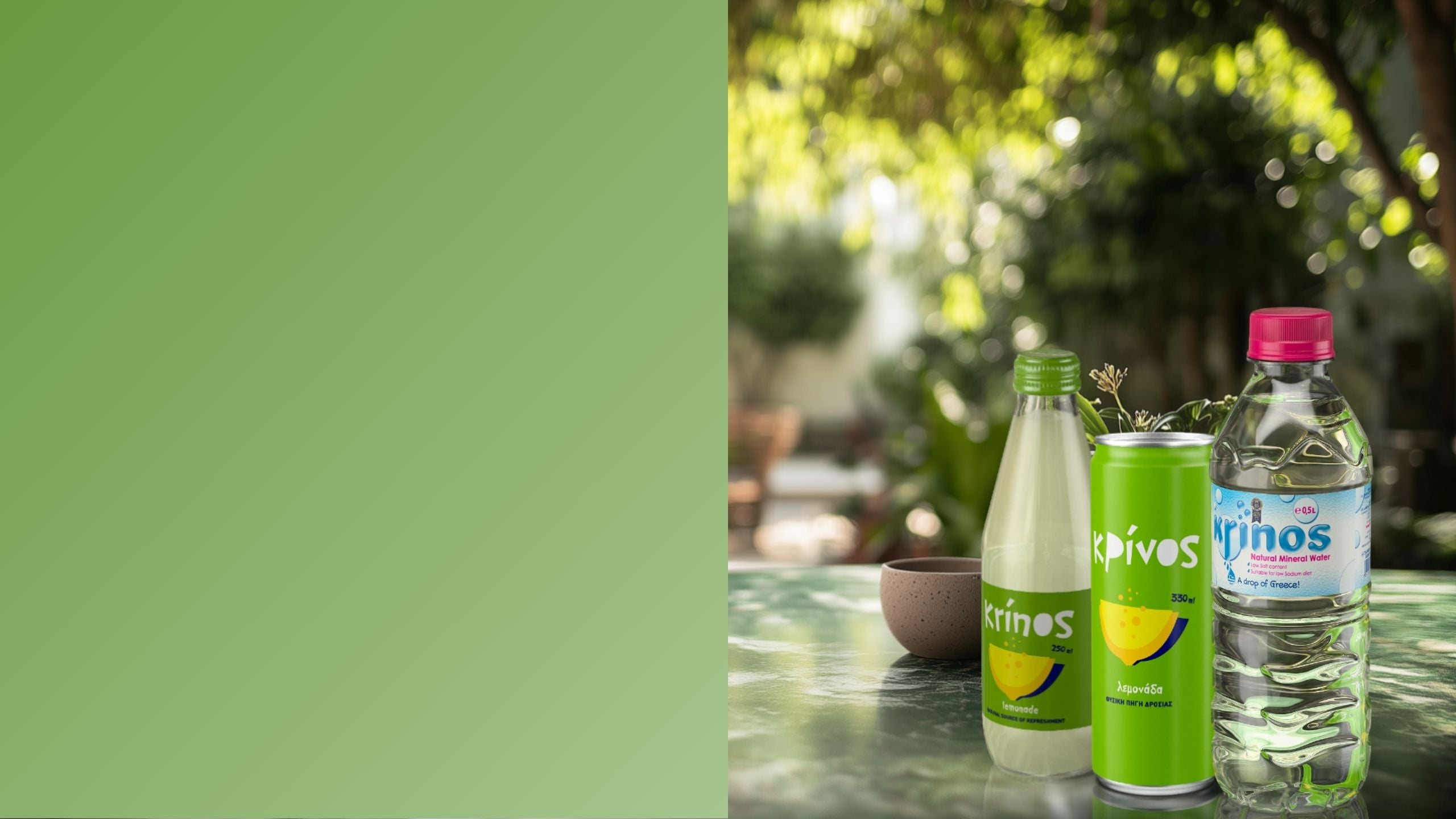 Savor the unmatched quality of Krinos Natural Mineral Water, coming straight from our privately owned spring in Rododafni, Achaia. Every one of our products uses the same high quality water, ensuring their perfect taste.